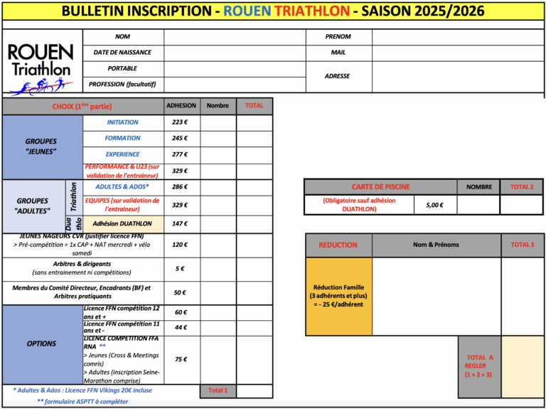 N’attendez plus, l’année 2025 vous attend ! Inscrivez-vous dès maintenant et faites partie de l’aventure Rouen Triathlon. Ensemble, on va plus loin !