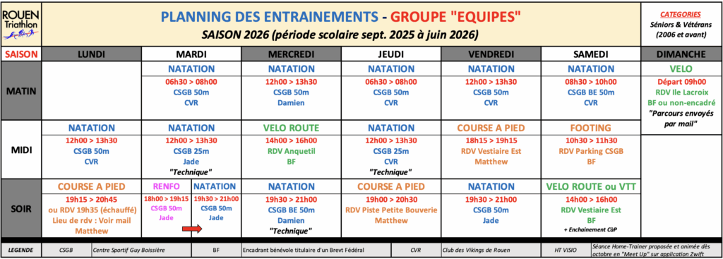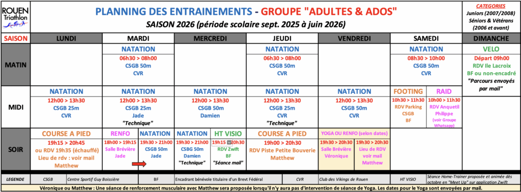 Sur cette page, découvrez notre planning général (créneaux d’entraînement, rencontre, autre).